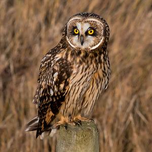 After scouring the salt marsh for a meal, this short eared owl decided it was time to take a rest on this fence post. Photographed in southwest British Columbia, December 2017.